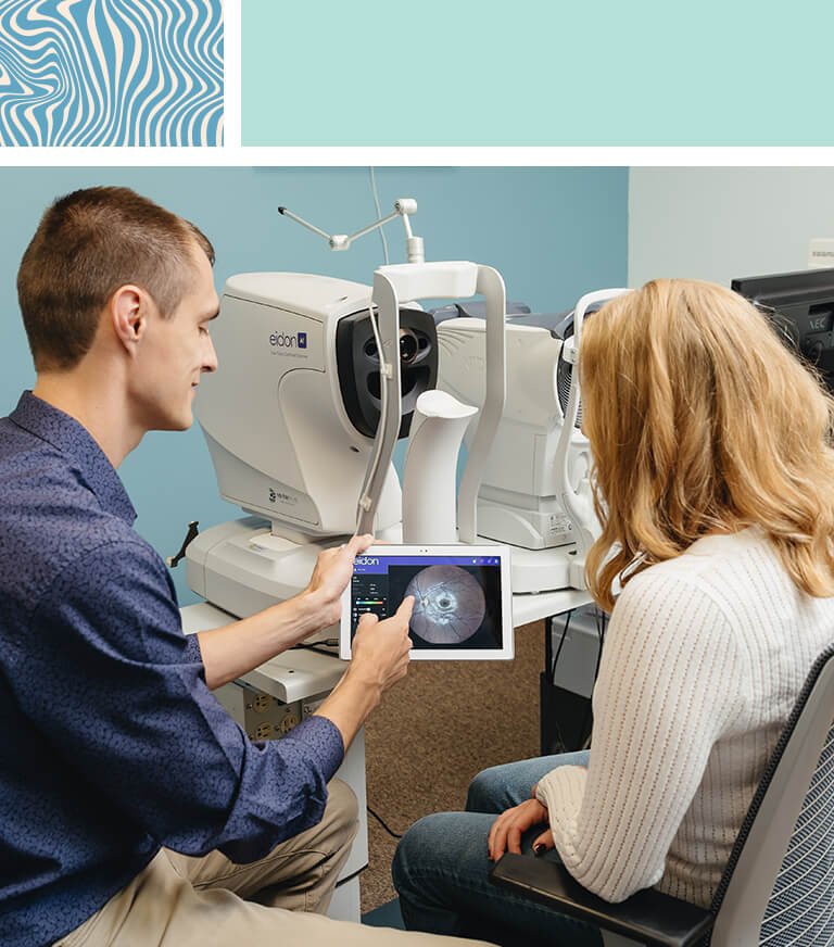 To help detect, monitor, and manage various eye conditions, we utilize a range of technologies and innovative imaging techniques, including OCT scans, retinal imaging, visual field tests, and others. These technologies allow us to see microscopic changes in your eyes or vision that indicate emerging conditions, allowing for early intervention.